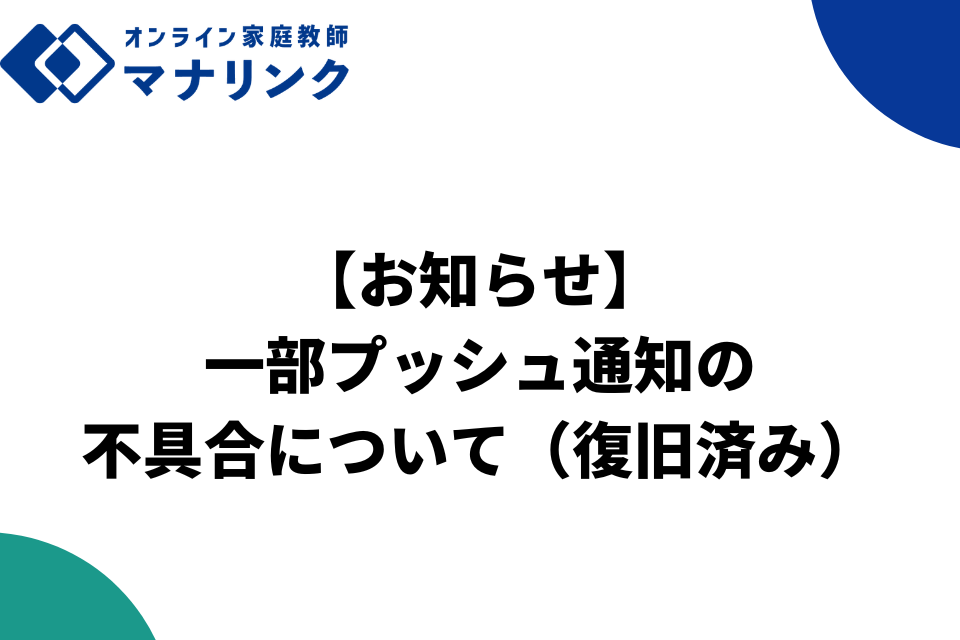 本日、午前7:30頃〜8:30頃にかけて、弊社が利用している外部サービスの影響により、プッシュ通知が一時的に正常に届かない不具合が発生しておりました。