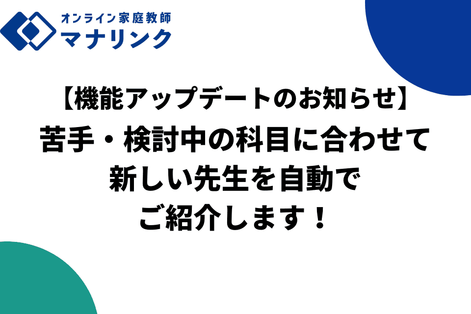 このたび、「苦手科目」「検討中の科目」を自由に編集できる機能と併せて、苦手・検討中の科目の新しい先生を自動でご紹介する機能を追加いたしました!