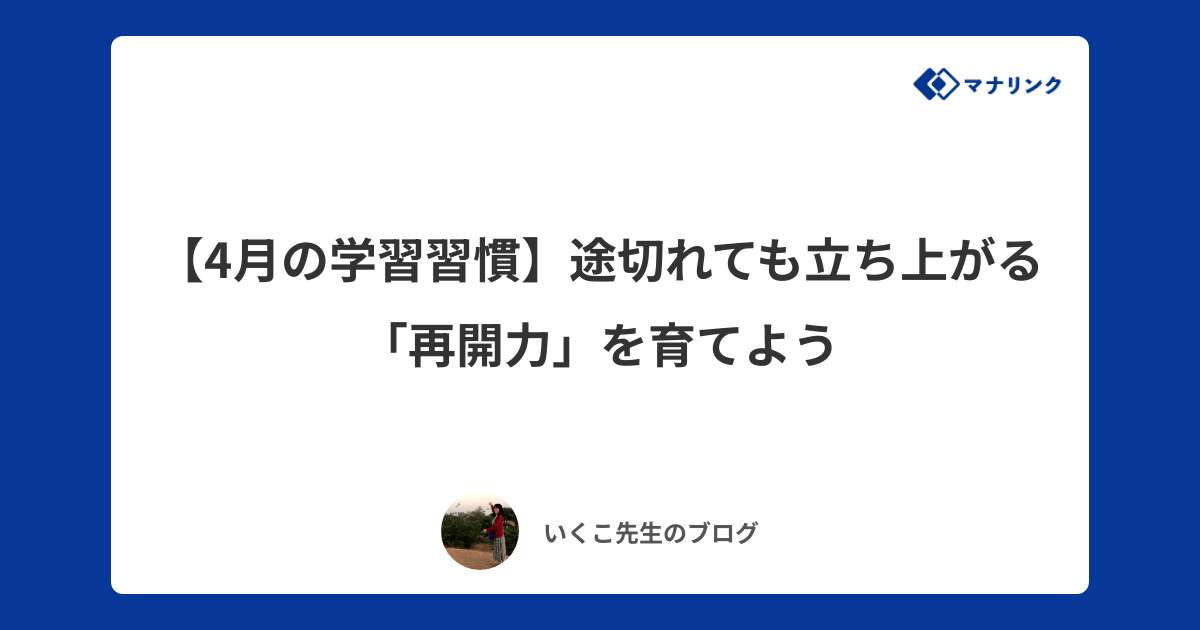 - 【4月の学習習慣】途切れても立ち上がる「再開力」を育てよう