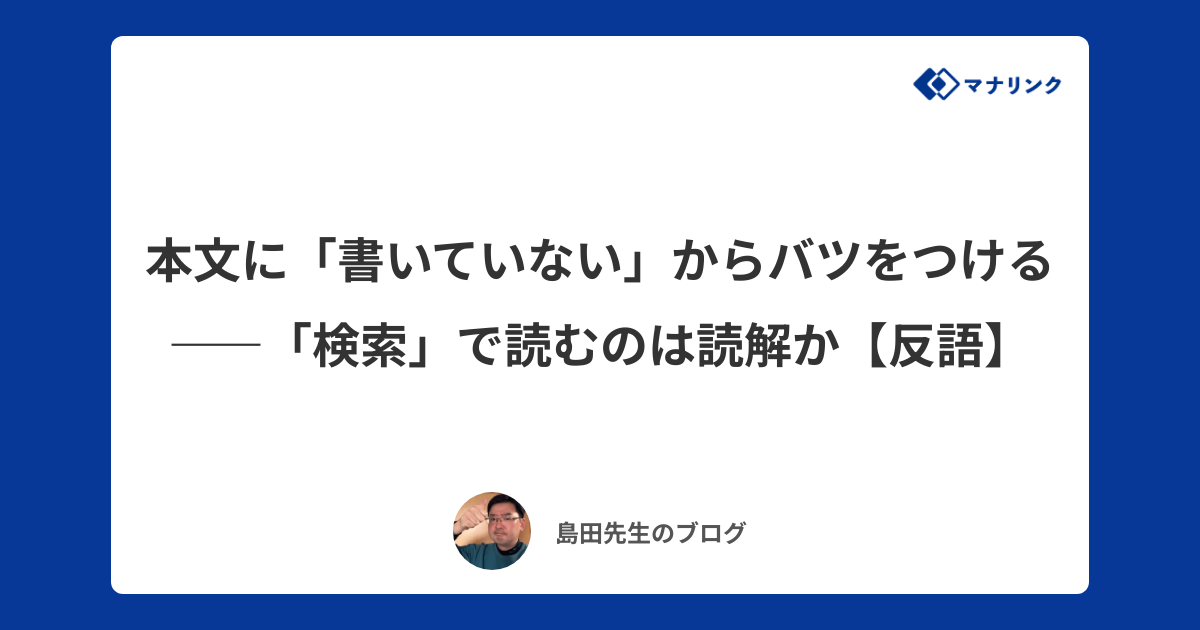 - 本文に「書いていない」からバツをつける――「検索」で読むのは読解か【反語】