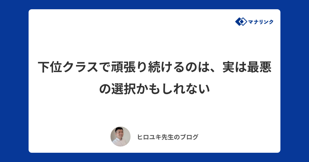 - 下位クラスで頑張り続けるのは、実は最悪の選択かもしれない