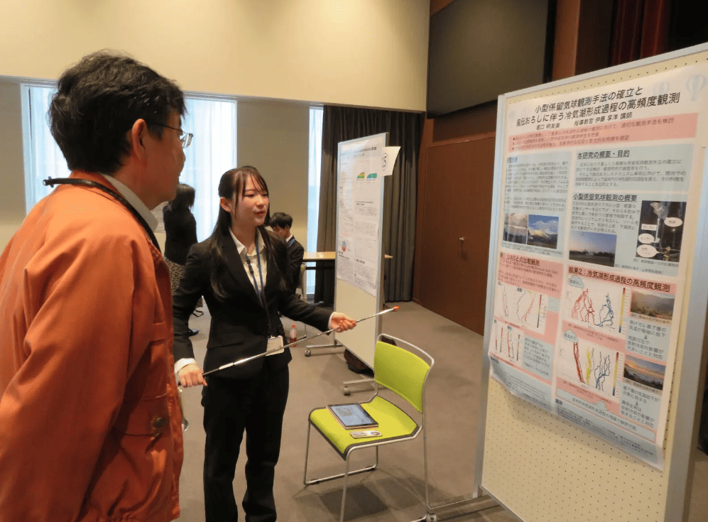 卒業研究の成果については、論文にまとめるほか、気象庁本庁で幹部や専門知識を持った職員に対してポスター発表をしたり、国土交通大臣に概要を説明したりする機会もあります。