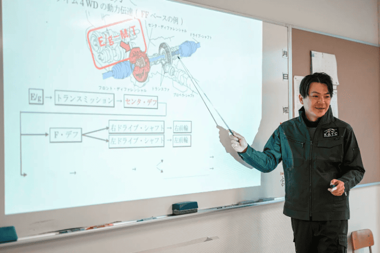 一人ひとりのレベルに合わせた徹底指導で、自動車の構造といった基礎から整備に関する法規などの高度な知識までしっかりと学べます。