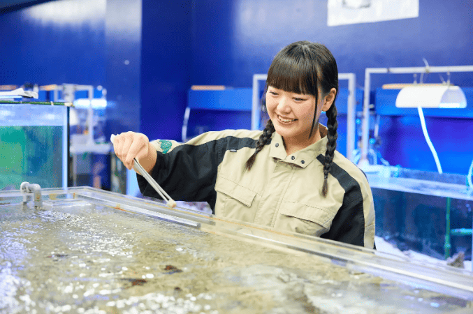 学内飼育動物の中には絶滅危惧種となっている埼玉県の県魚「ムサシトミヨ」を特別な許可をいただき学内育成・繁殖を行っているなど、各学科にそれぞれ大宮国際動物専門学校だからこその特色と強みを持ち、学生を教え育みます。