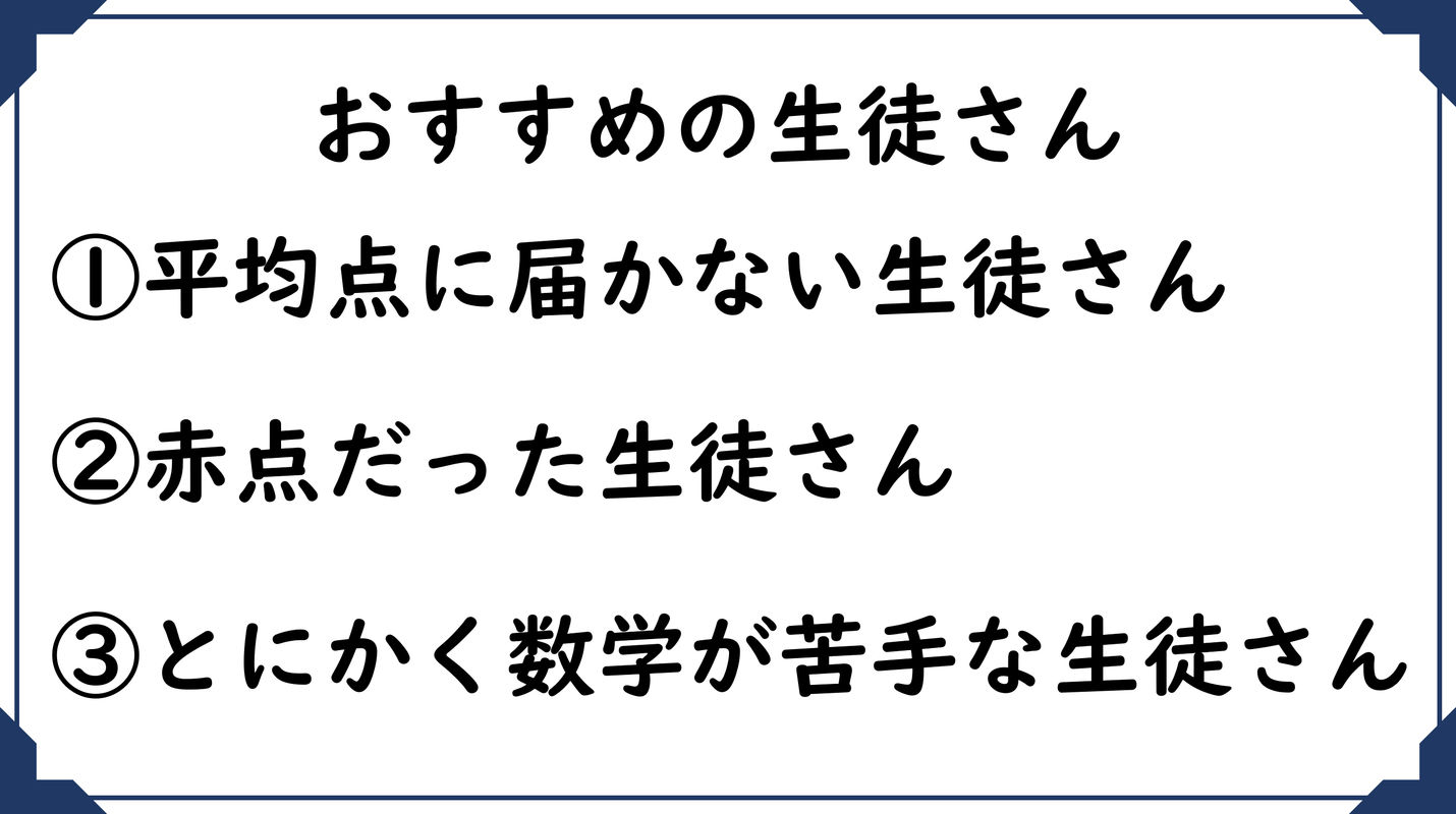 苦手分野の基礎問題の演習を繰り返すことで、苦手分野を克服して、定期テストの成績を上げていきましょう!