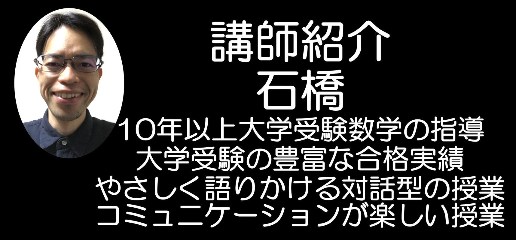 10年ほど、数学の大学受験対策の講座を担当しておりますオンライン講師の石橋と申します。