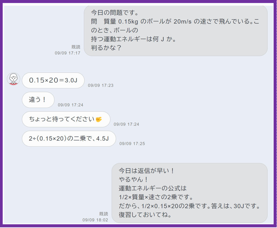 ⑵私が、解答解説を作成し、写真で撮ってチャットで返却します。
