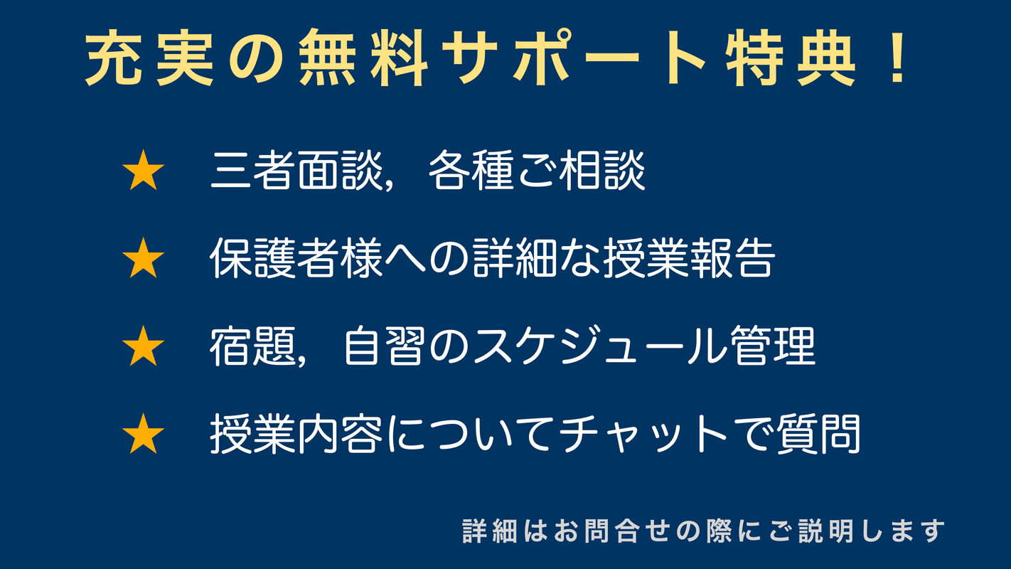 時間は45分程度です。 <前半> ・学習状況の聞き取り ・事前にお知らせいただいた情報に基づいて授業を組み立てます。 <後半> 保護者様の同席の元,現在お困りの点や本授業になった場合の指導方針などをご相談いただけます。 最後に以上の内容を踏まえて本授業に進まれるかどうかご判断ください。