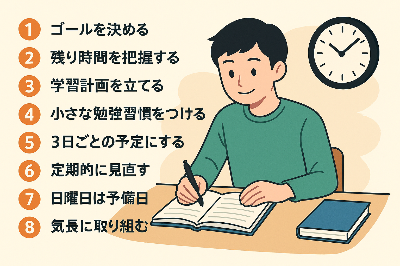 以上、受験勉強を「続けること」「見直すこと」を前提にした計画術をご紹介しました。完璧を目指す必要はありません。「ズレたら直せばいい」そのスタンスで、確実に歩みを進めていきましょう。