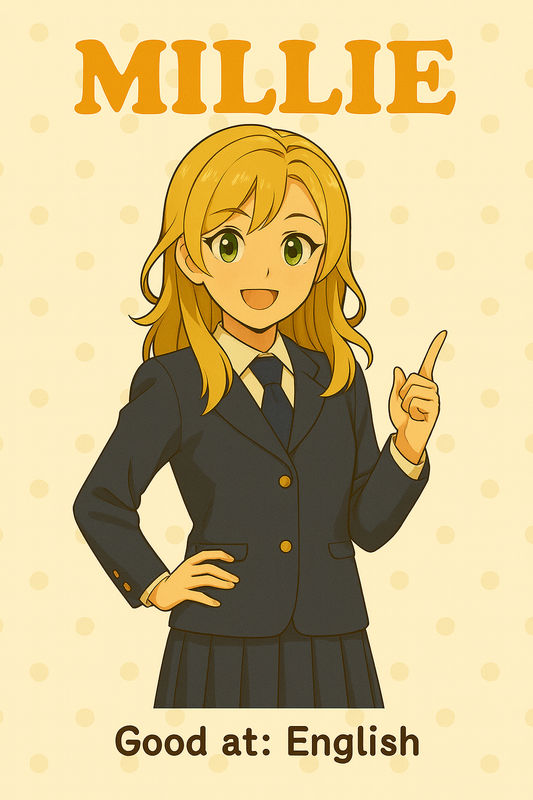 2️⃣明るくフレンドリーなミリーは、英語を中心に海外の学び方や発想を交えてアドバイスします。