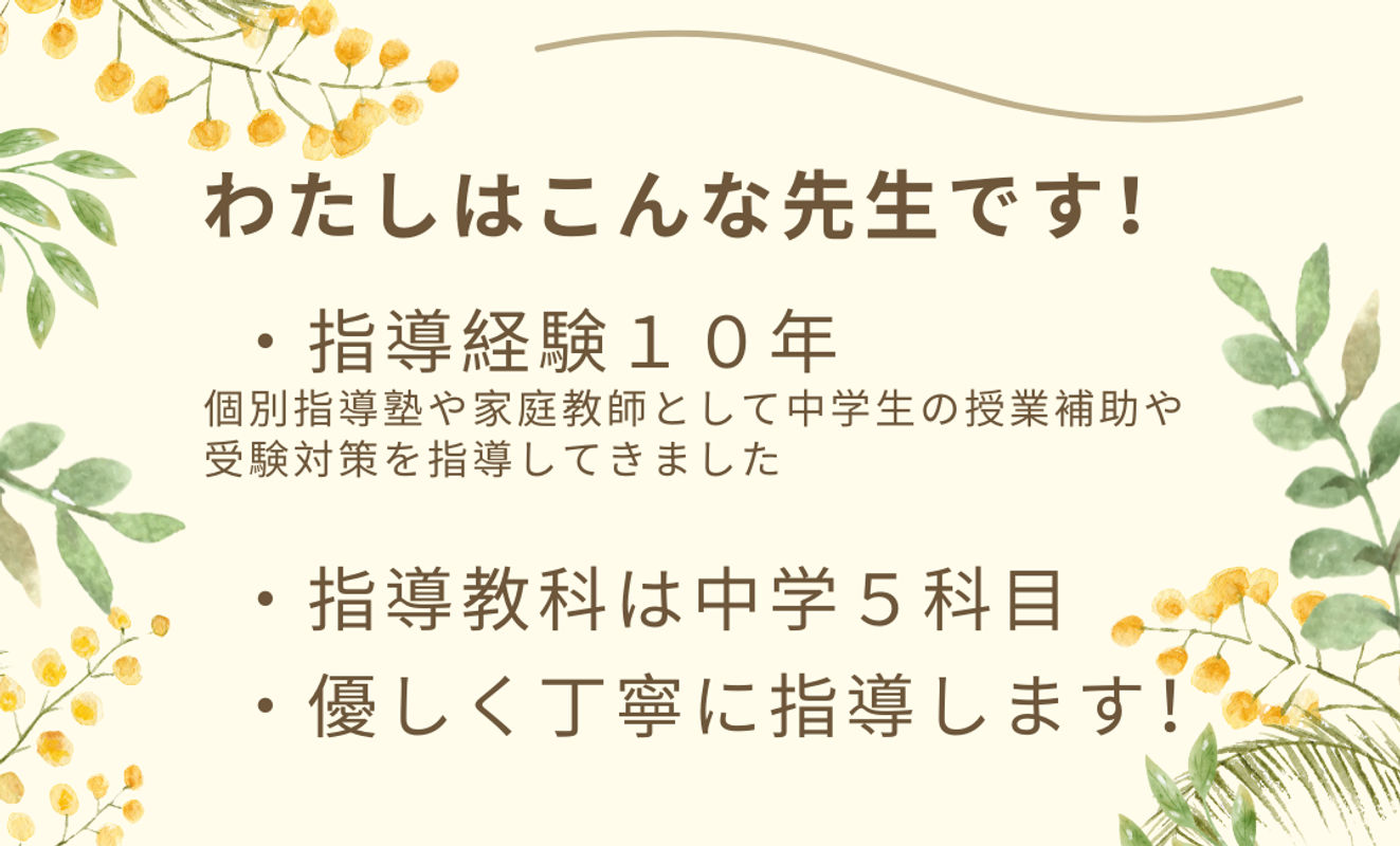 - プレッシャーを与えず、自分のペースを尊重してくれる先生に教えてもらいたい!