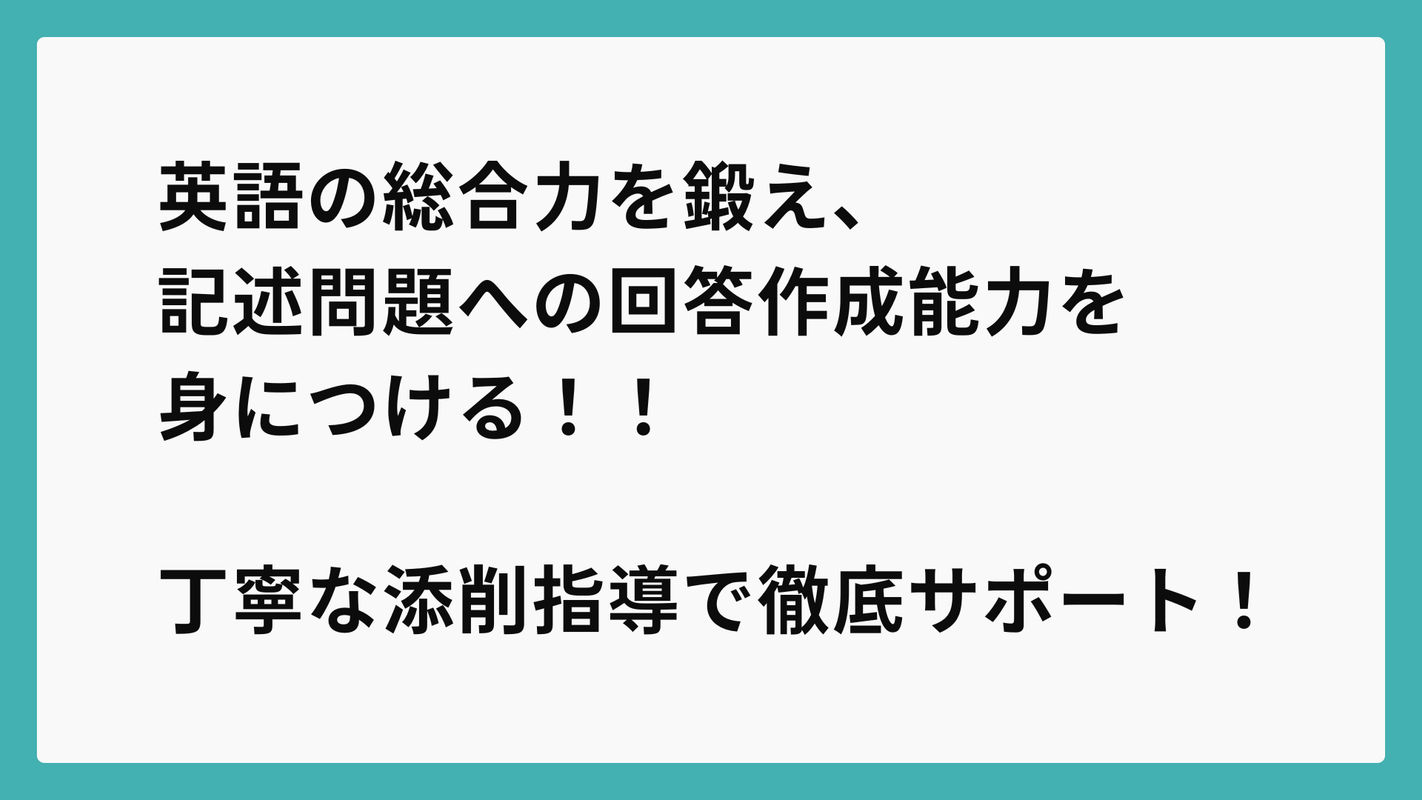 皆さんの記述問題への対応力をしっかりと磨くお手伝いをいたします。