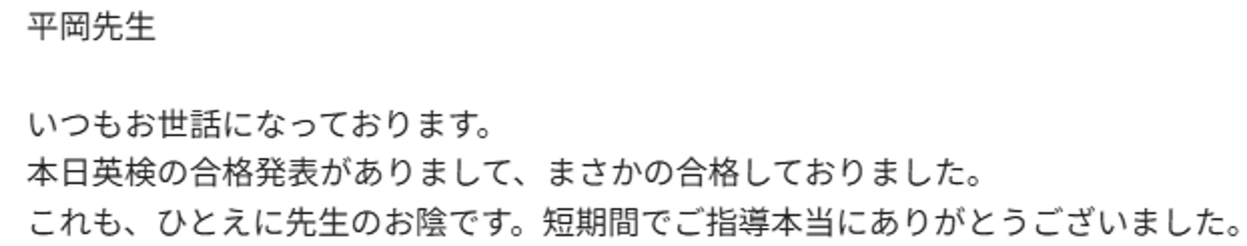 多くの子どもたちを見てきた経験から、早期の成功体験がその後の学習意欲に与える影響の大きさを強調します。「合格」という目に見える成果が自信となり、英語以外の学習にも前向きに取り組めるようになるメンタル面の変化を支えます。