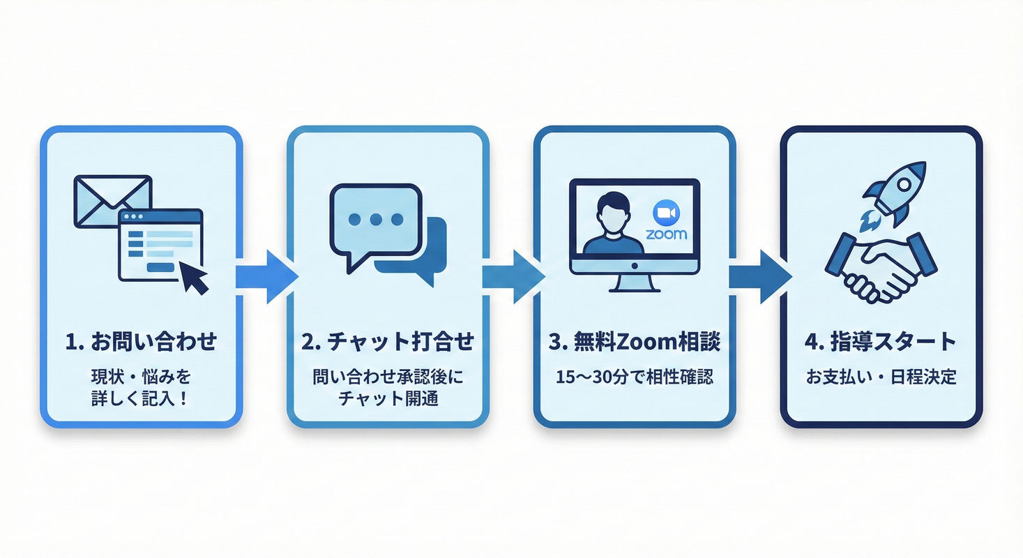 まずはチャットとZoomで、お互いの相性と方針を確認しましょう。