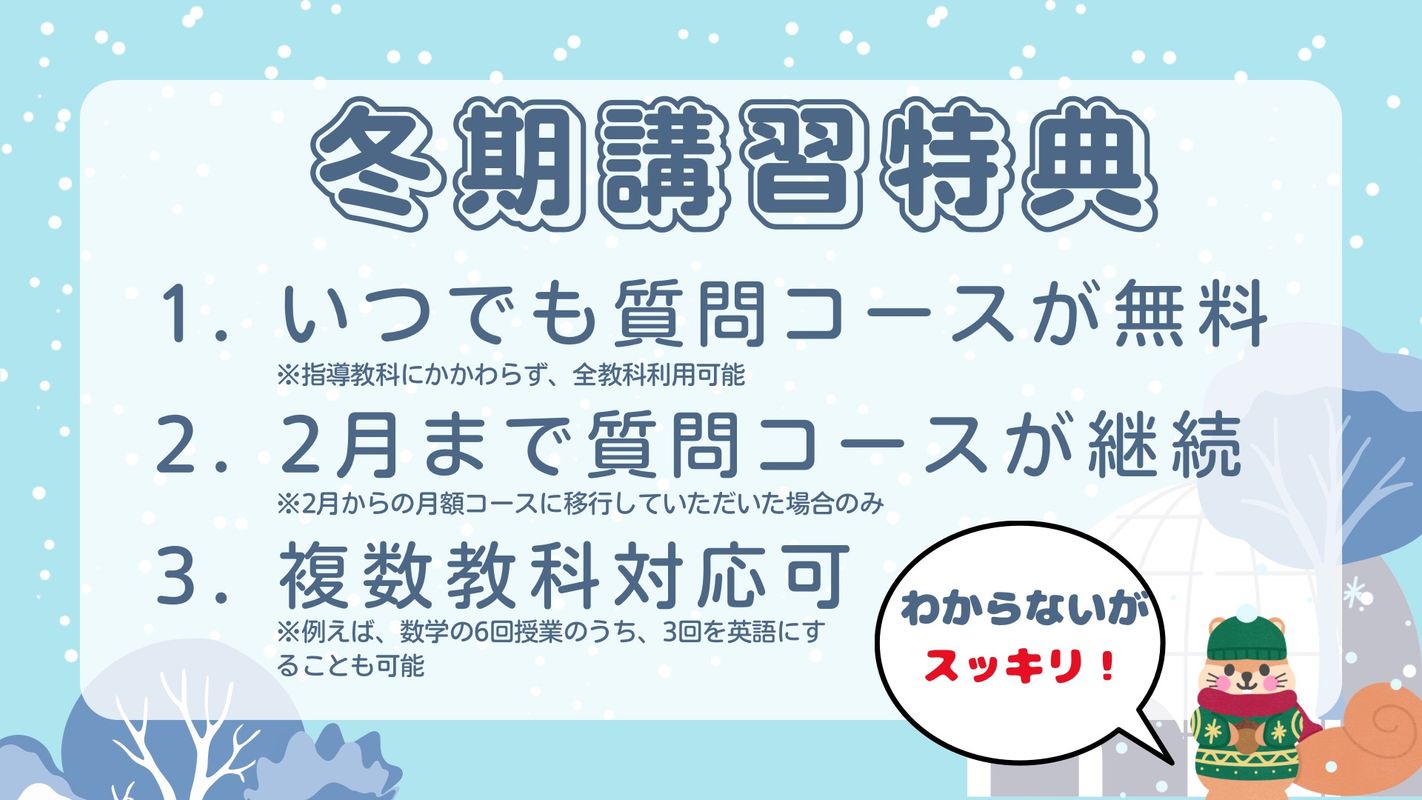 - 冬休みの間に今までの復習と先取り学習をしたい生徒さん